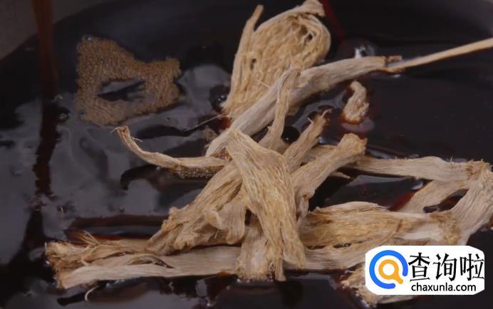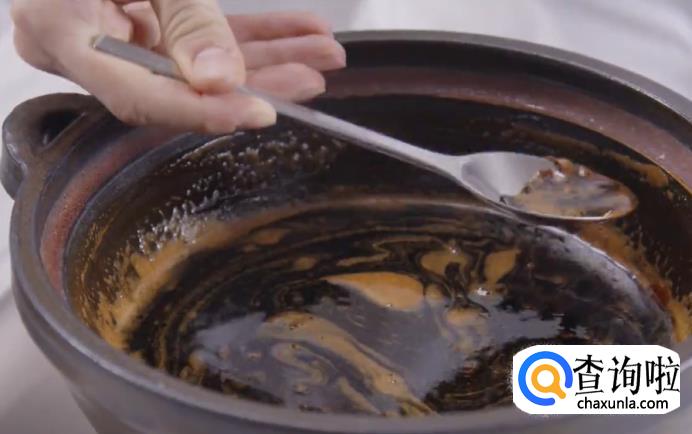 开大火把姜醋汁煮沸,然后转小火慢炖收汁,直至姜醋汁变得粘稠,能挂在勺子上为佳。煮好之后,取出竹架和生姜,把锅里的浮沫撇去。