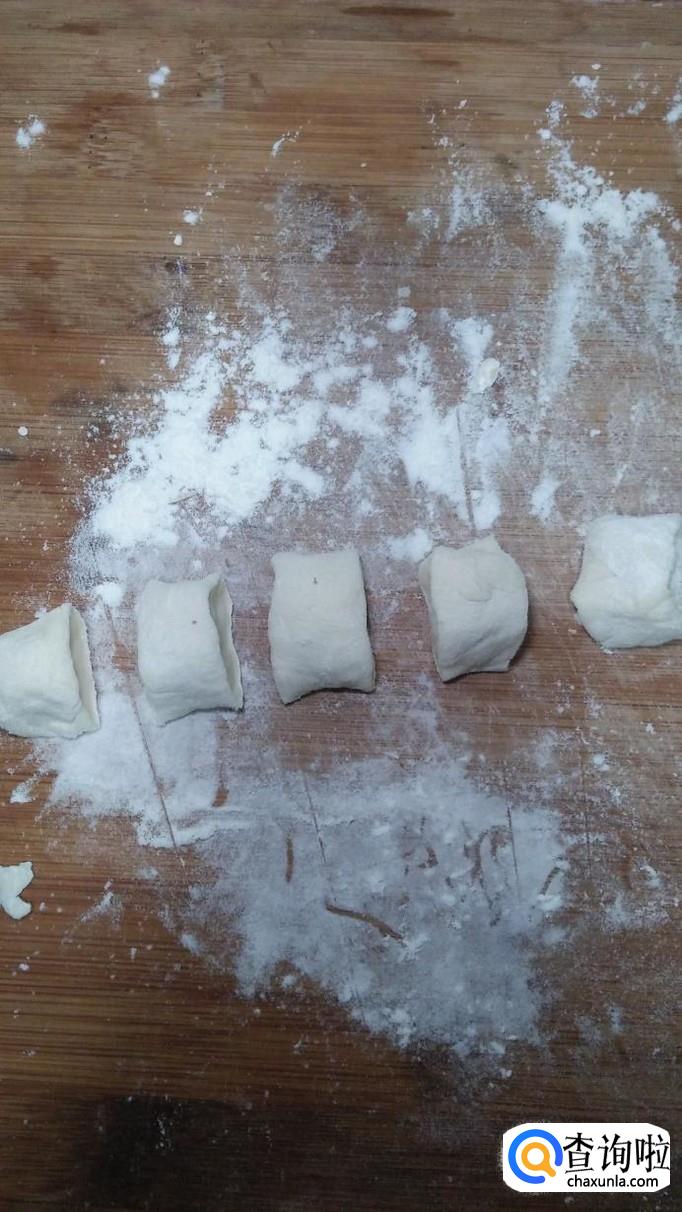 将醒好的面搓成长条,分成小剂子,然后擀成薄片,尽量擀得圆一些。