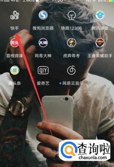 打开手机,找到快手,点击并进入,如图所示。