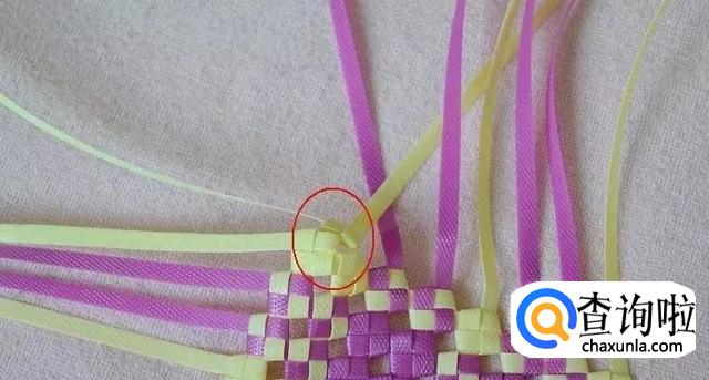 等我们编好4个转角后,头尾相交,剪去线头。