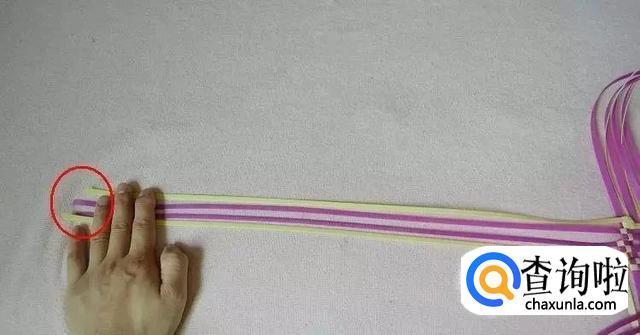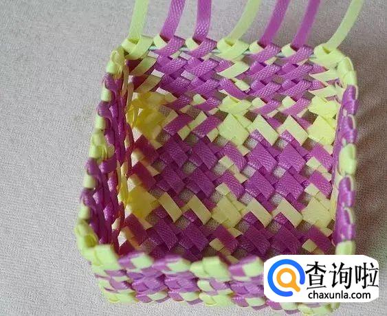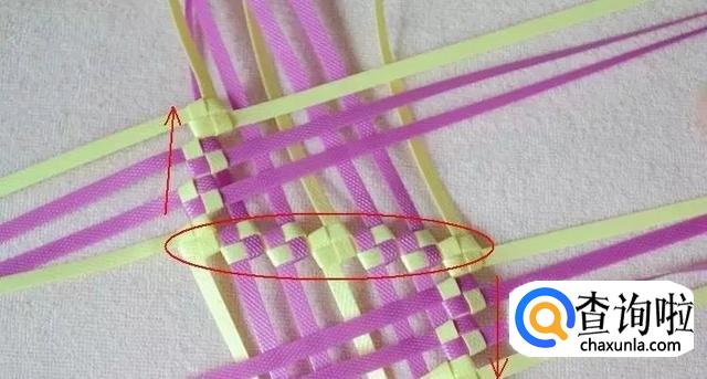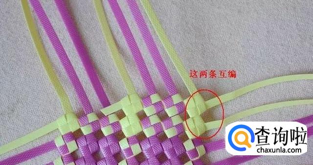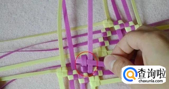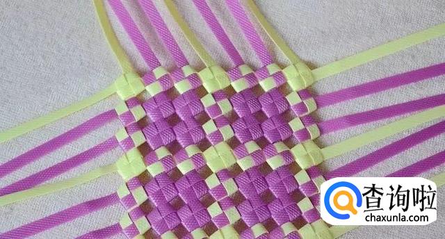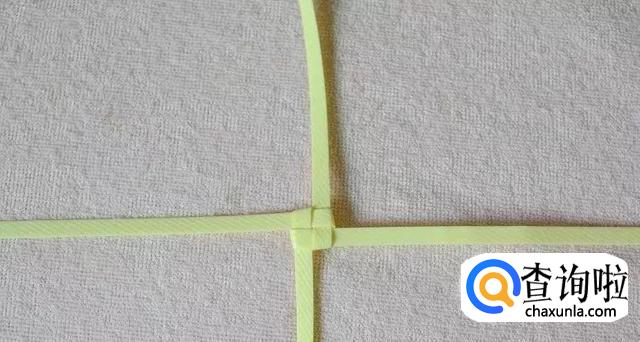 首先我们拿出一条编长的和一条编宽的,将它们编出一格田字。