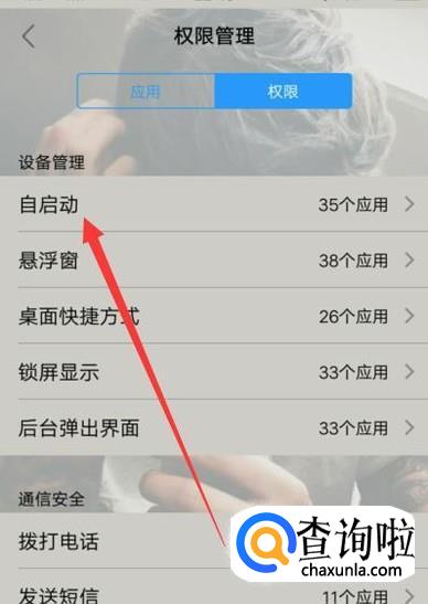 进入之后,点击“自启动”,进入下一页面,如图所示。