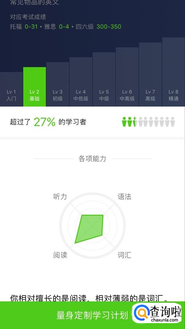然后我们点击量身制定学习计划,这时就会让我们选择需要达到的目标,上面会有标注,我们就根据自己的实际情况去选择