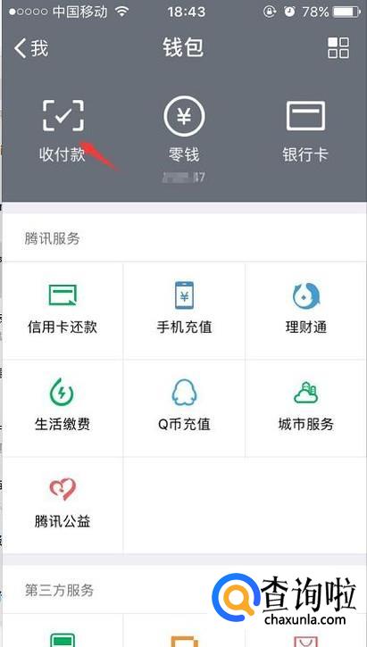 在钱包里面左边是一个收付款的功能,点击进去。