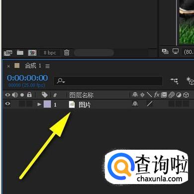 把一张图片素材从电脑桌面上拖入到AE图层面板这里来。自动生成一个图片图层。