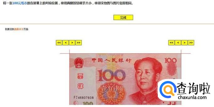 然后可以使用参照物来测量物品,比如测量100元,如下图所示:
