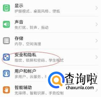 在手机桌面点“设置”按钮,进入“设置”菜单后点击“安全与隐私”按钮。