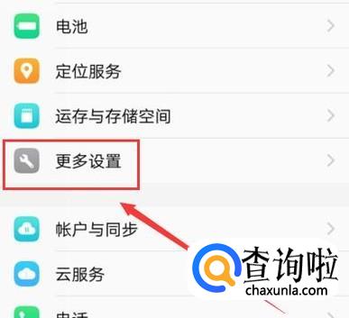 在设置界面,找到“更多设置”点击并进入,如图所示。