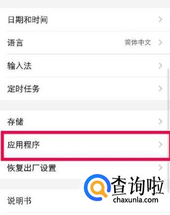 在更多设置里面找到应用程序,点击并进入,如图所示。