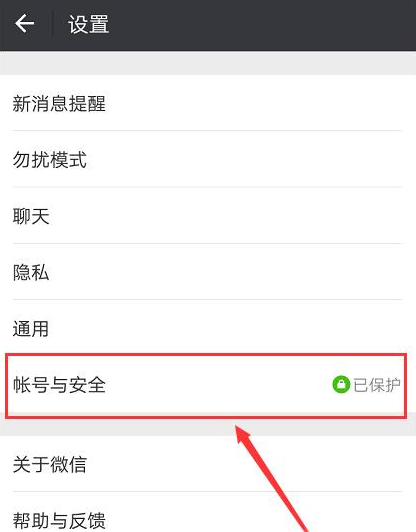 3、完成密码修改后,进入设置-帐号与安全-打开帐号保护。
