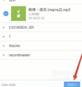 在聊天框的右边点击“+”号,添加需要发送的音频文件,点击发送即可。