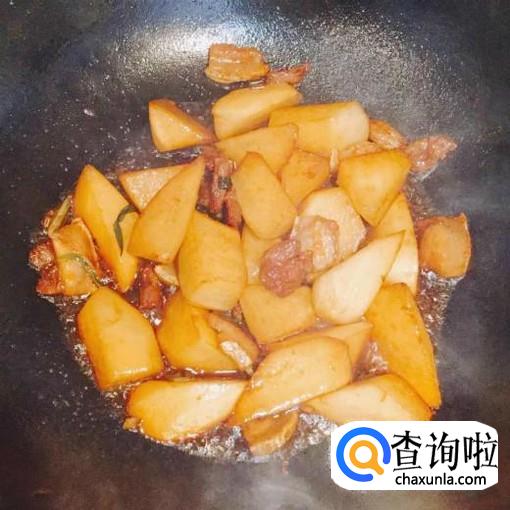 加入适量温水,水量高过白萝卜。先开中大火煮沸,然后用一根筷子蘸点汤汁尝尝咸淡,根据个人口味加入少许盐、味精等调料。再转小火盖上锅盖慢慢将白萝卜炖熟,白萝卜的白心没有了就是炖熟了。喜欢软烂口感可以水量多点,炖的时间长点,用一根筷子试下,能轻易穿过萝卜就炖的比较软烂了。最后用大火收汁(建议留一点汁水)。