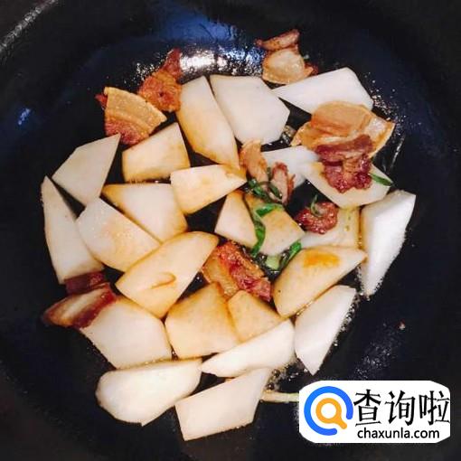 这道菜做法简单,但也有两点要注意的:第一、五花肉肉片不宜太少,三四片肉片熬出的油脂太少,达不到效果。第二、要注意顺序。这道菜我做过几遍,有次加水之后再放酱油生抽,白萝卜不好上色,颜色偏白,吃起来也没那么入味。