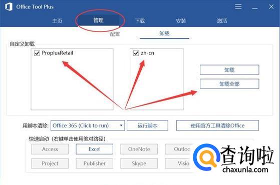 首先在网页上搜索下载Office Tool Plus。然后使用Office Tool Plus卸载以前版本:请先点击管理标签然后点击卸载全部将已经安装的版本完整卸载掉并重启。
