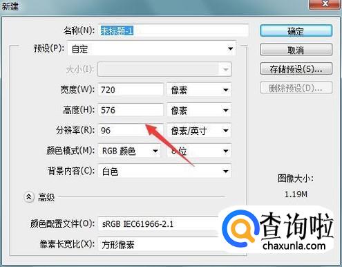 打开ps之后按下Ctrl+N键在弹出的对话框内设置参数如图所示: