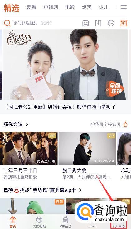 进入腾讯视频首页之后,登录你的个人账号,接着,点击右下角的【个人中心】。