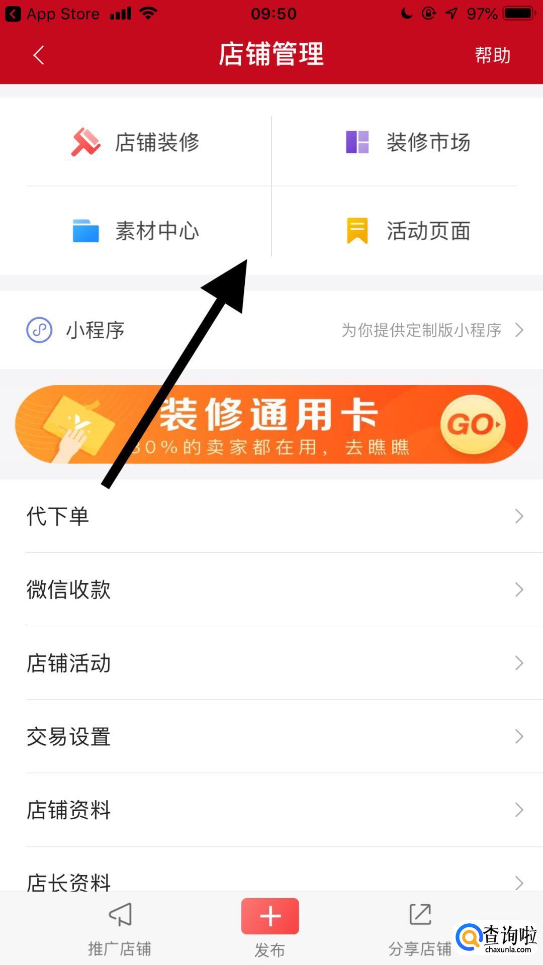 在这个界面,可以对店铺进行装修和活动页面进行设置。
