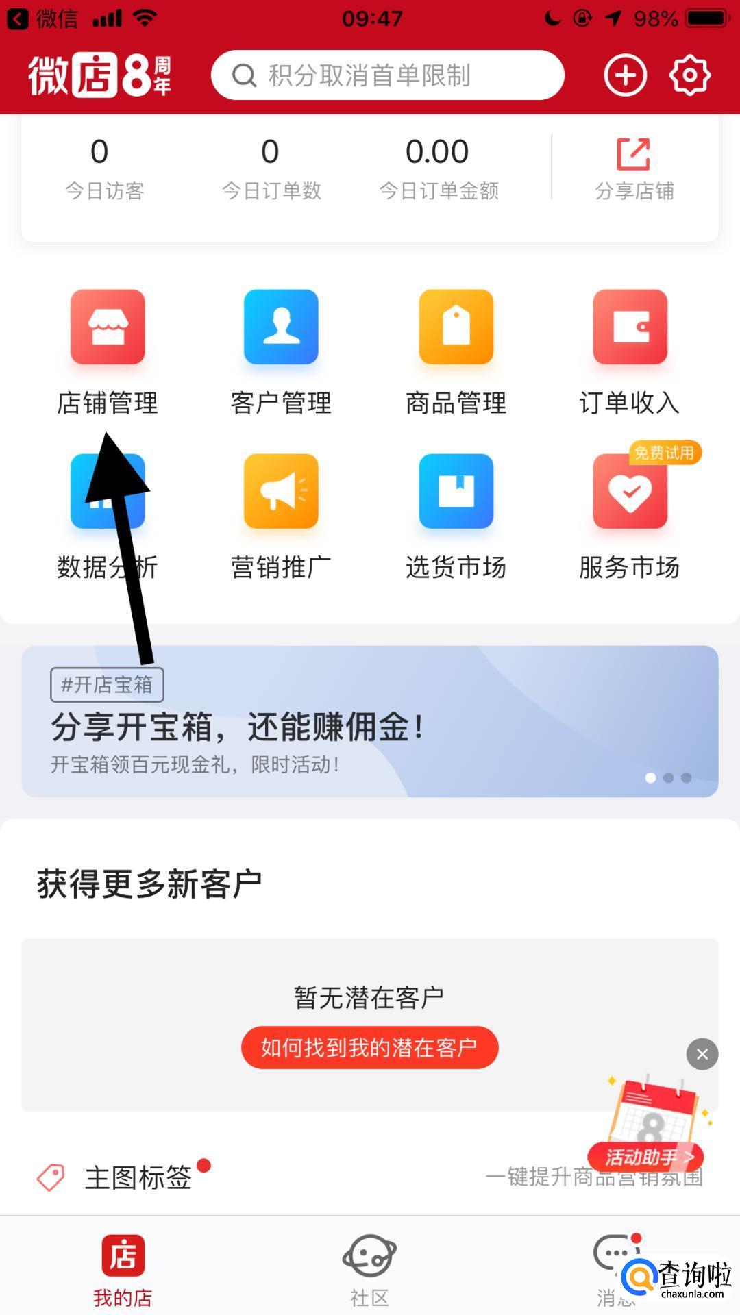 点击店铺管理。
