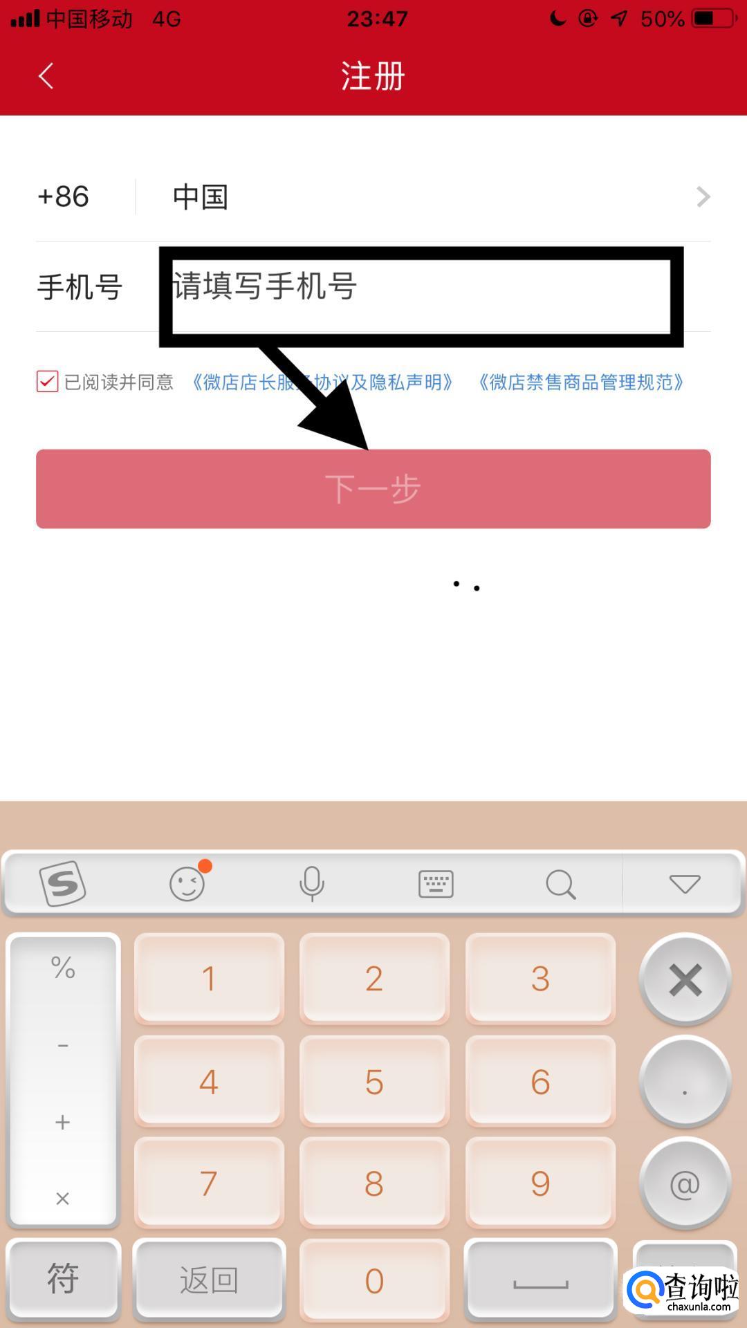 接着输入想要的手机号码并点击下一步。