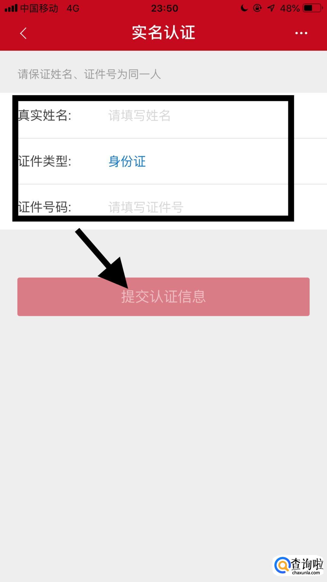 输入个人信息并点击提交认证信息。