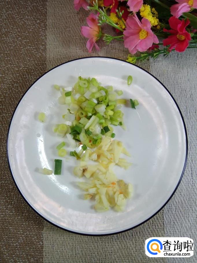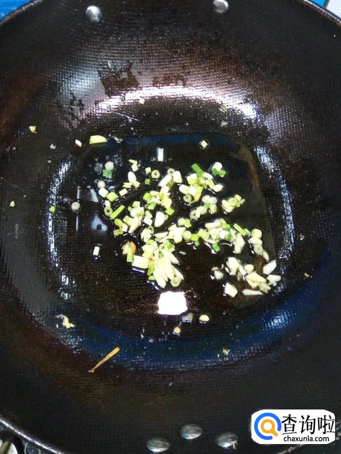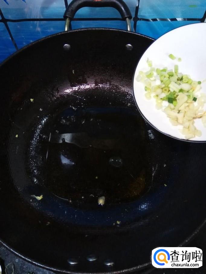准备适量葱,姜,蒜,洗净后切成碎末,放入盘中备用,炒锅中放上适量油,油热后,将葱末,姜末,蒜末放入锅中炒香。