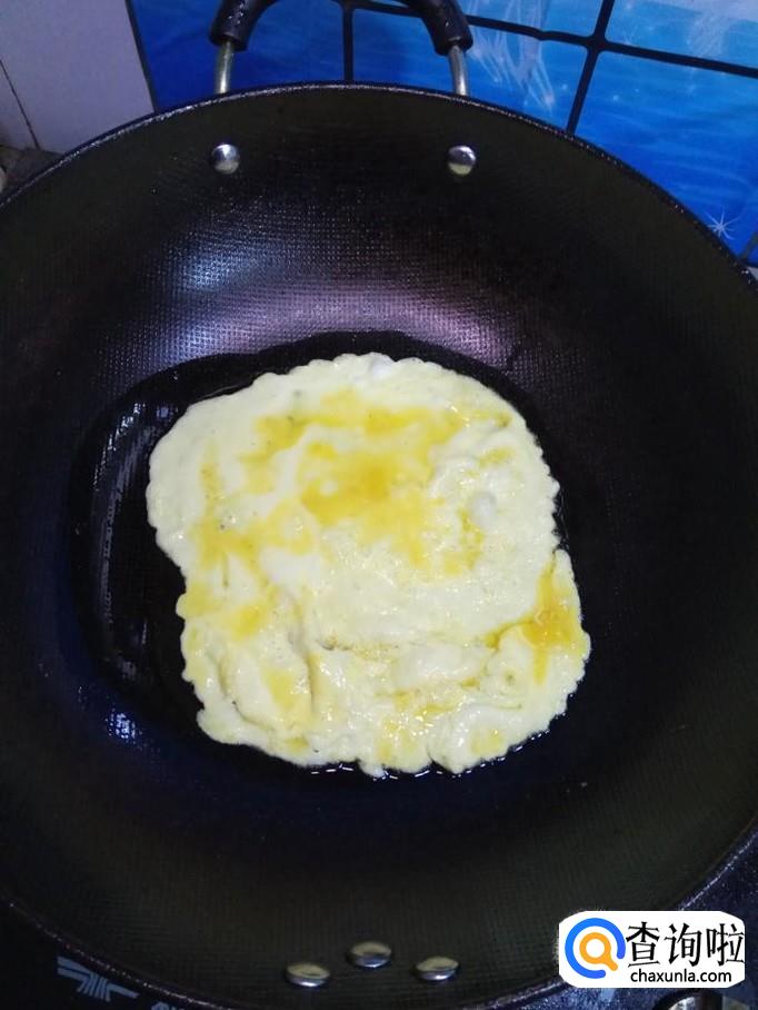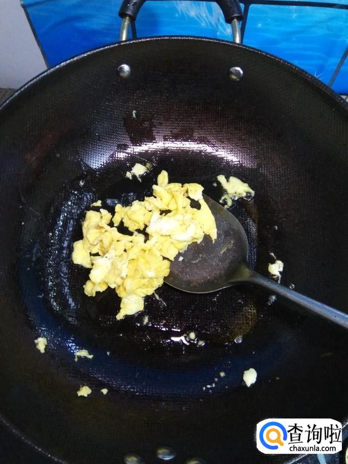 锅中烧热油,油热后,将鸡蛋放入锅中炒熟,盛出备用。注意,鸡蛋不要铲太碎。