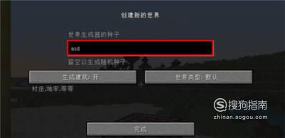 种子快速生成,创建新的世界,点击“更多选项”。在选项中“世界生成器种子”中输入“asd”,点击完成创建世界。进入游戏,你就会在村庄中出生。