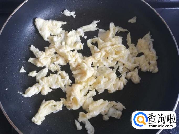 蛋液尚未凝固时,快速翻炒鸡蛋