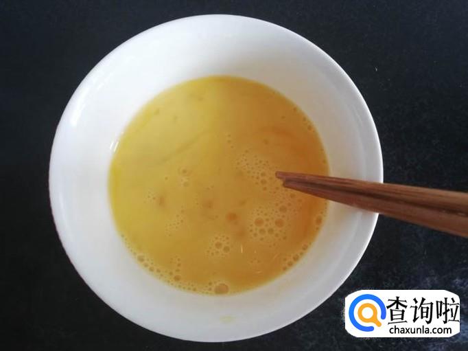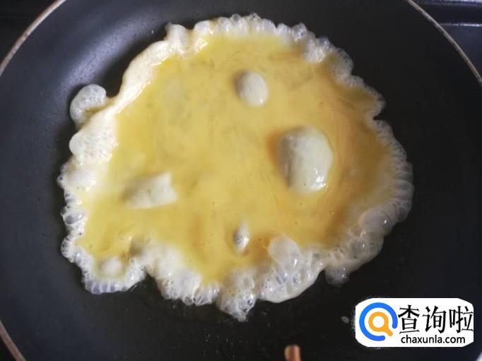 锅烧热,加入适量油,油热后倒入蛋液