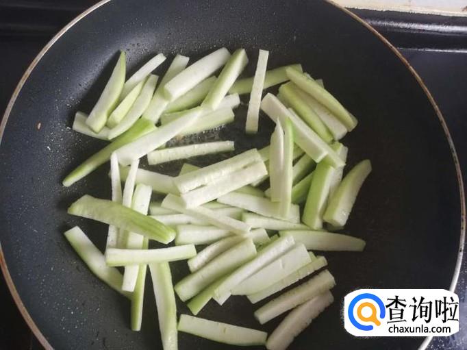 炒好的鸡蛋盛出,锅中留底油,丝瓜下入锅中翻炒