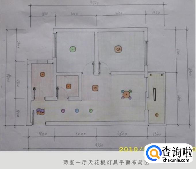 最后也是最重要的一步,既然都标注了地面设施了,那么天花板上的设施也是需要标注的,一个房子里,最重要的不过是光照问题了,那么在这个图纸上我们就需要将我们房子里所有的光照设施和需要安装在天花板上的设施都标注下来。