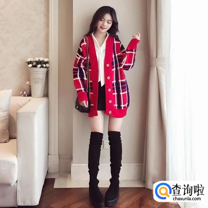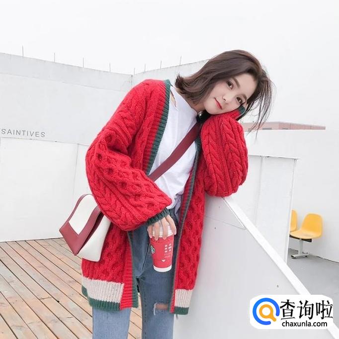 牛仔裤。像这种开衫型的红色毛衣,比较适合搭配一个宽松的体恤再加上牛仔裤,有一种特别韩版的感觉,适合比较学院风的女生,是一款很美的校园搭配。