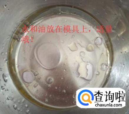 接着,把水和油放在模具上备用,只要适量哦,如下图所示