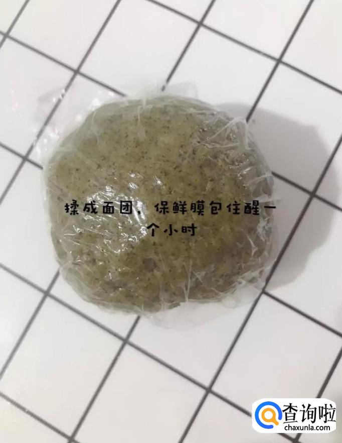 然后把所有的食材揉成光滑的面团并用保鲜膜包起来醒发一个小时,如下图所示。