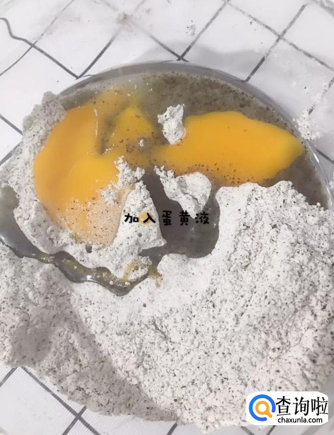 然后加入蛋黄液,搅拌均匀,如下图所示。