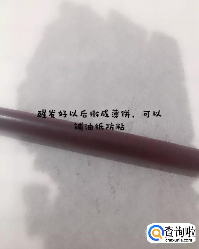 接着将醒发好的面团擀成薄饼,如下图所示。
