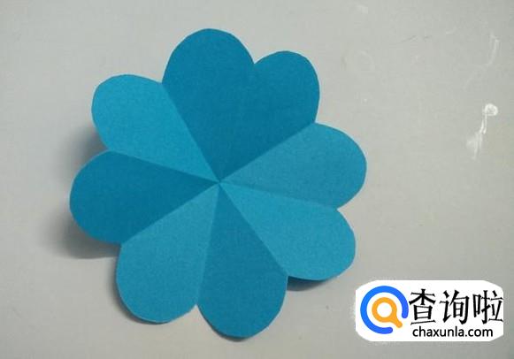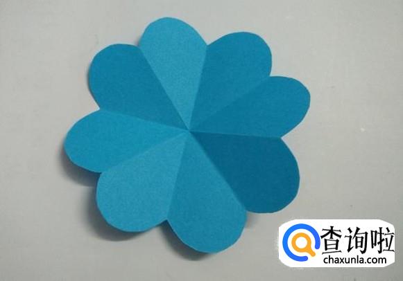 打开折纸,一朵八瓣花就剪好了。