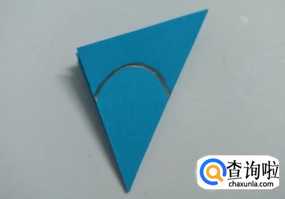 将折纸摆放成下图的位置后画上圆弧状。
