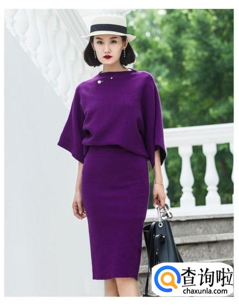 还有些紫色群子搭配紫色上衣这样看起来非常正装,当你选紫色上衣时要看你的下身的紫色裙子是什么料子的,要选一样的料子,这样看起来没那么混乱。