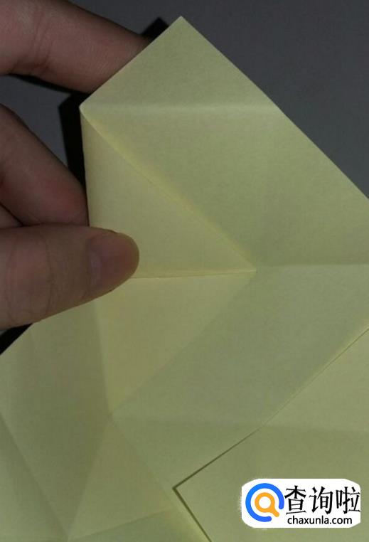 将上角折下去,这样就立起来一个折纸盒子的底部的一边了。