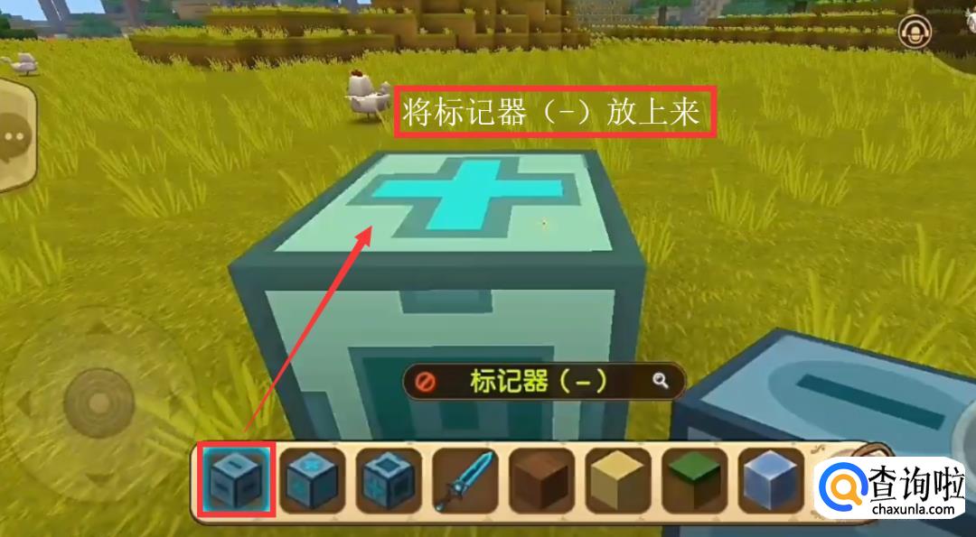首先我们选中【滑动方块】,然后在草地上选择一个空的位置放上【滑动方块】,在放置时加号向上。