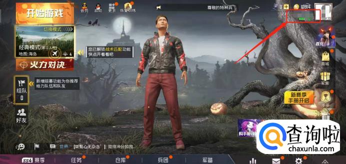 首先登陆和平精英,进入和平精英主页,在箭头所示位置是你现在的游戏ID,和你第一次登陆的QQ(微信)昵称是一样的: