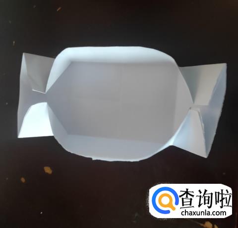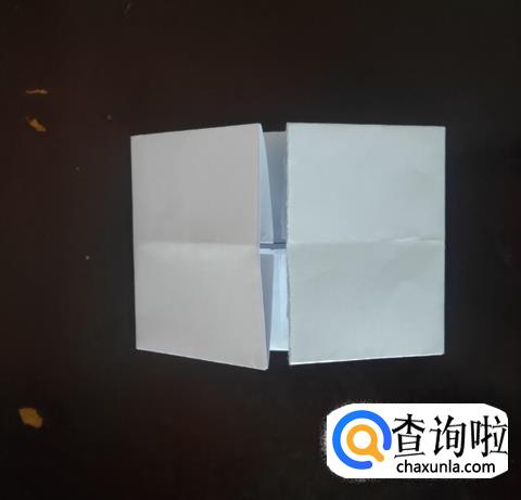 第二次对折的部分展开,把四角都向中心线的位置折出三角形形式。