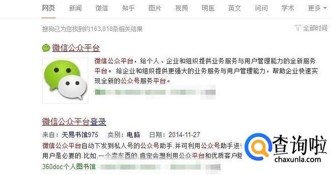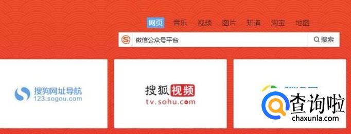 首先在我们的电脑上打开搜狗浏览器,然后输入微信公众平台并点击搜索,如下图所示。
