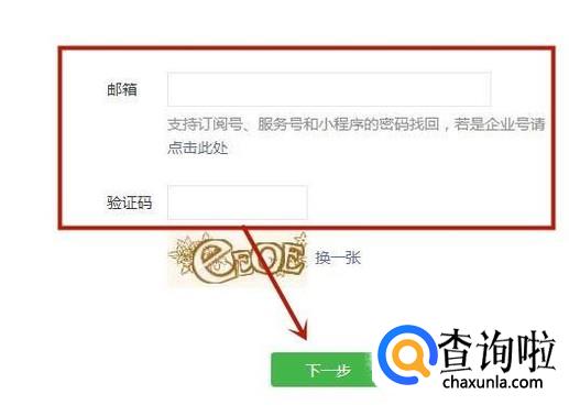 然后输入你的注册邮箱和验证码员点击下一步,如下图所示。