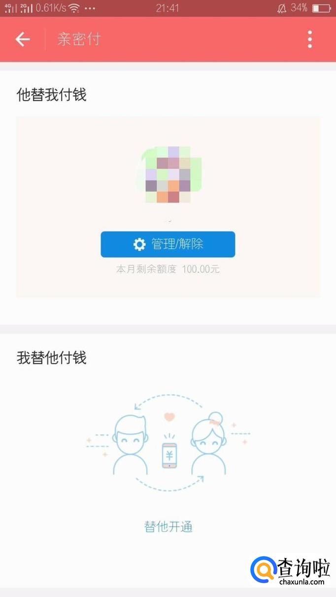 点击进入亲密付就可以开到你们之间的账单额度及付款信息了。
