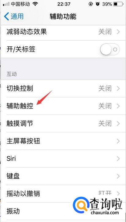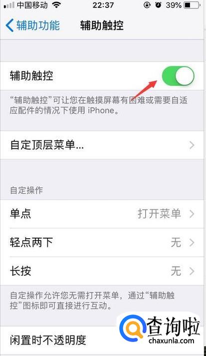 点击辅助触控后把该功能打开即可,打开后屏膜上就会出现小圆圈了。