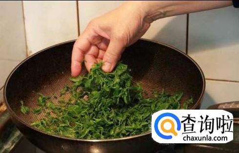 将酸枣叶放入锅中,开小火进行快速炒制,那么清楚,绝对能看懂。