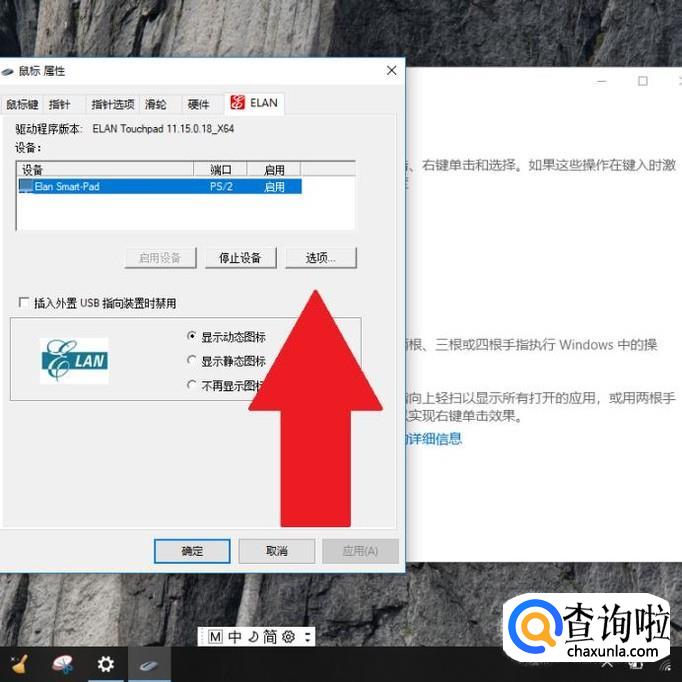 进入“鼠标”属性页面后,点击进入触控板驱动程序页面,接着点击进入“选项”。