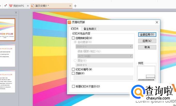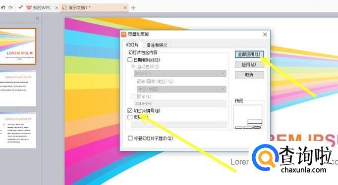 然后会弹出如图界面,我们勾选幻灯片编号,并且选择全部应用